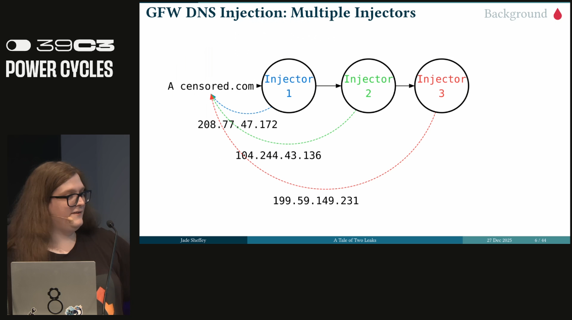 The censorship system uses TCP resets but also relies on DNS injection which will respond with bogus IP addresses. You can send DNS requests to the great firewall outside of China to see how the system responds.
