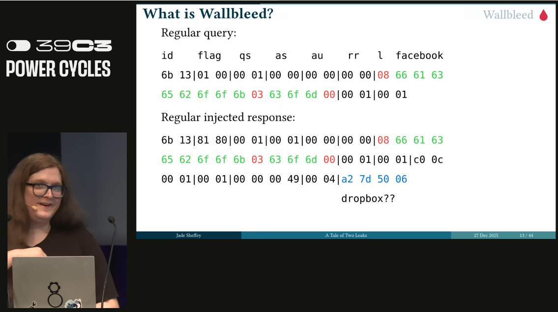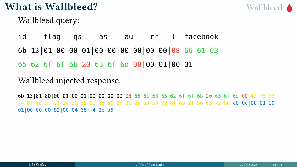 The researches found that the responses were dumping memory. This wallbleed query could return 124 bytes of memory. This vulnerability was patched in 2023.