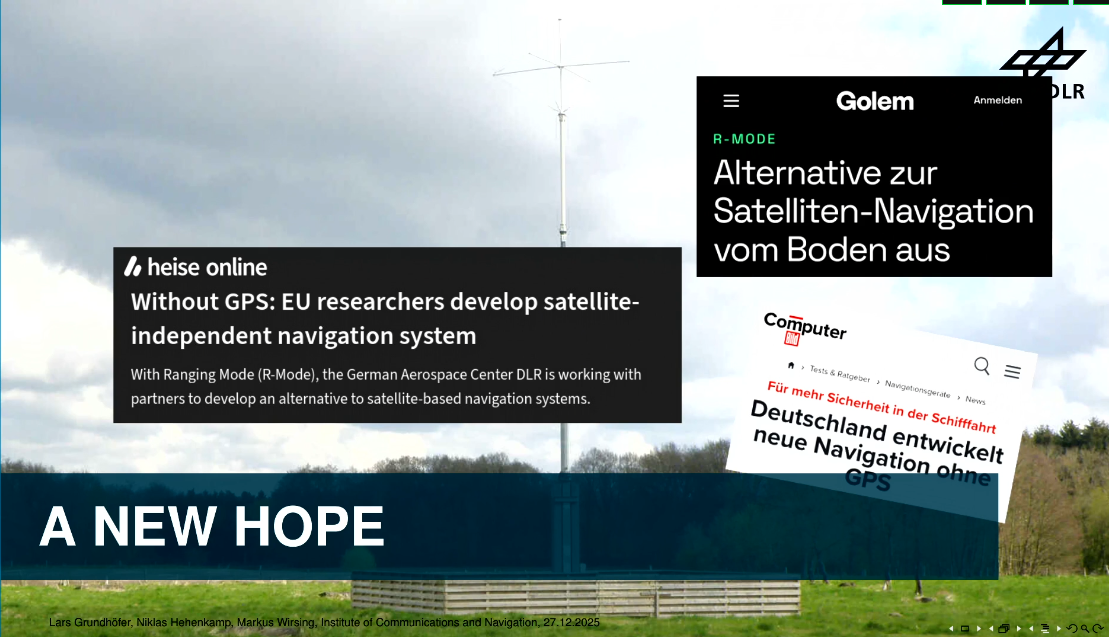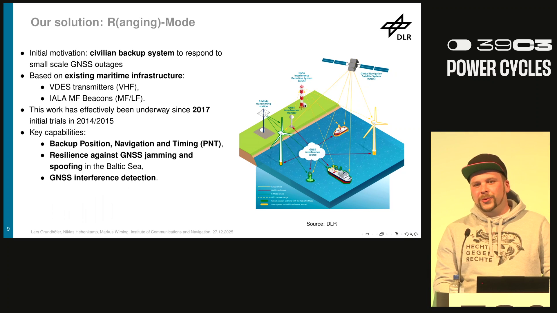 The proposed solution to provide a workaround uses existing maritime systems like VDES transmitters and IALA MF Beacons. The aim to provide backup time, navigation and positioning data. This solution is aimed at detecting GNSS jamming and spoofing.