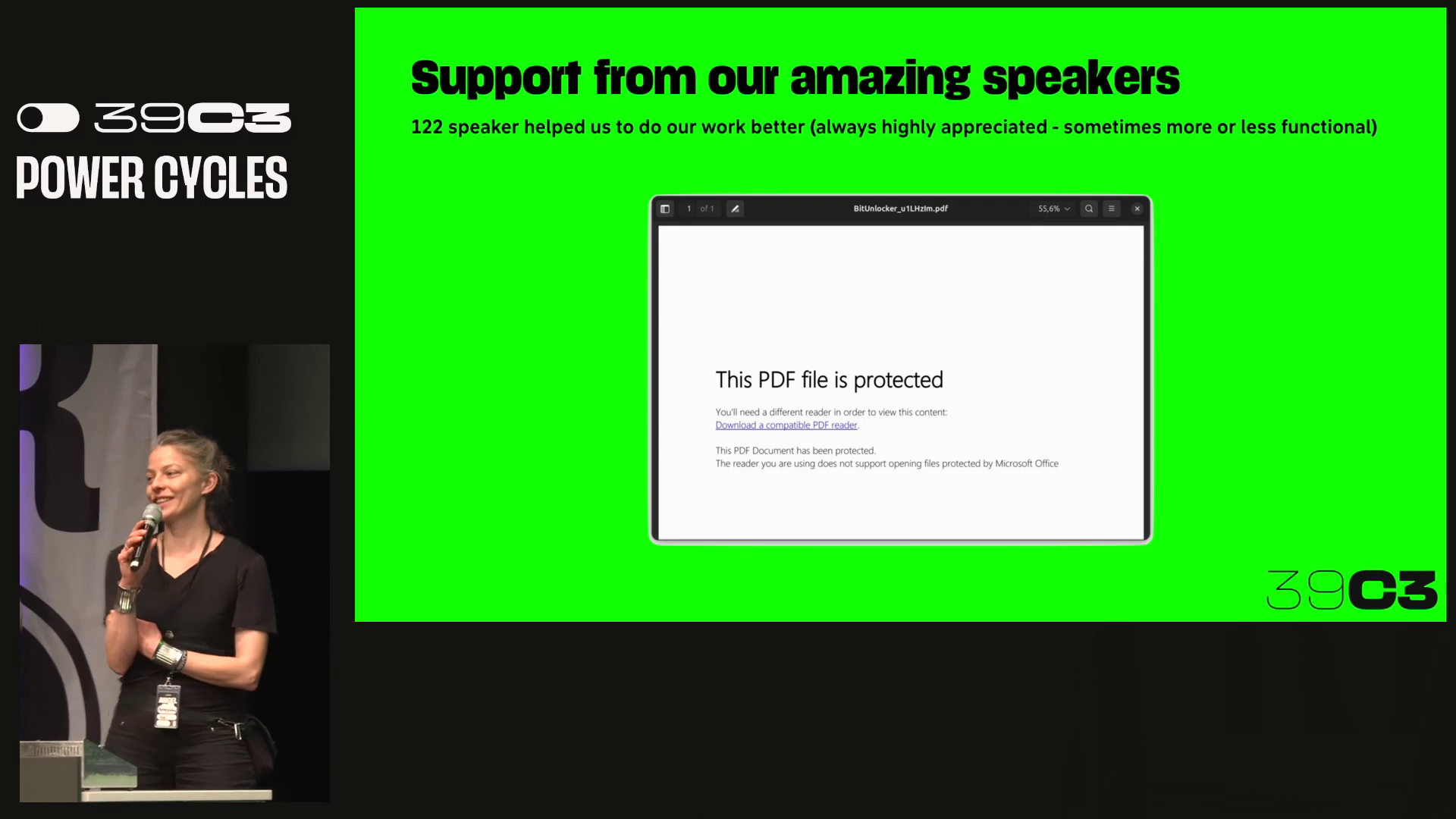 The team also synchronized data from PreTalx. Speakers helped by uploading their materials before hand so that they team could prepare for the translations. #39c3
