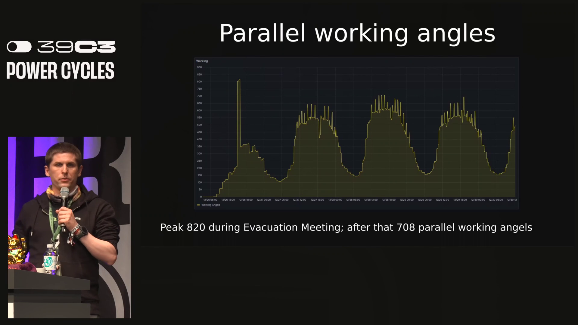 On day 0, an evacuation meeting was held which has more than 500 angels attending. This broke the system last year but thankfully didn't happen this year. Massive thanks to all the angels for their contributions! #39c3