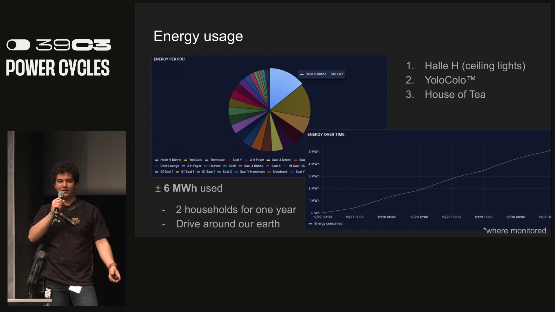 The congress used +/- 6Mwh of power (for the monitored usage) and the following used the most power: