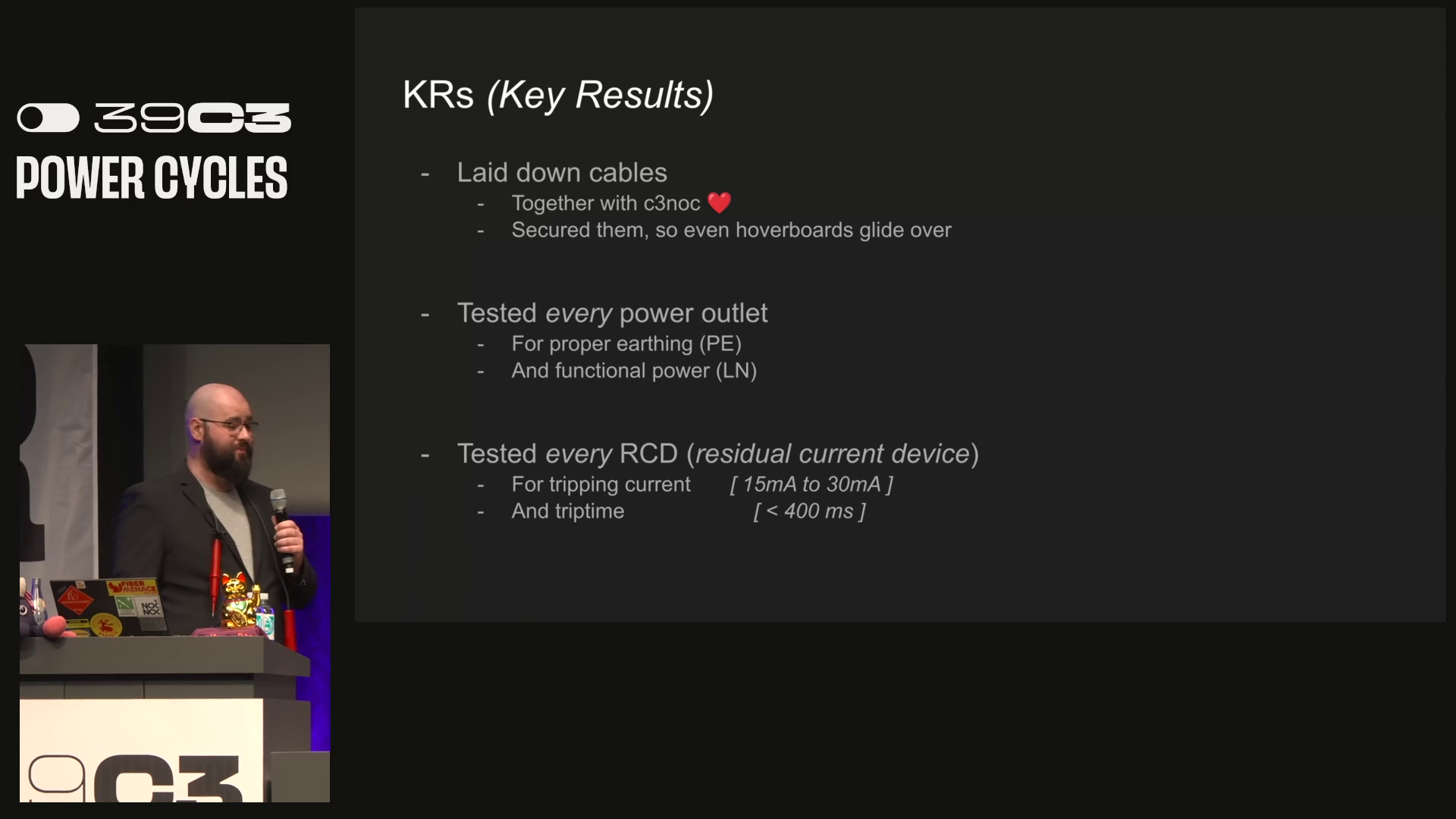 One speaker had 170 slides for a 45 minute talk and had practiced to get a high word per minute rate which made this very difficult to translate. Doing this takes a significant toll on the translation team. #39c3