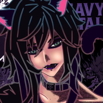 profile picture is a drowing of a black haired goth catgirl with snakebites (the piercing lol) drawn by my wonderful boyfriend