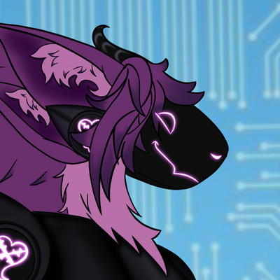 profile picture a protogen with purple / pink fur and pink lights, drawn by my bf