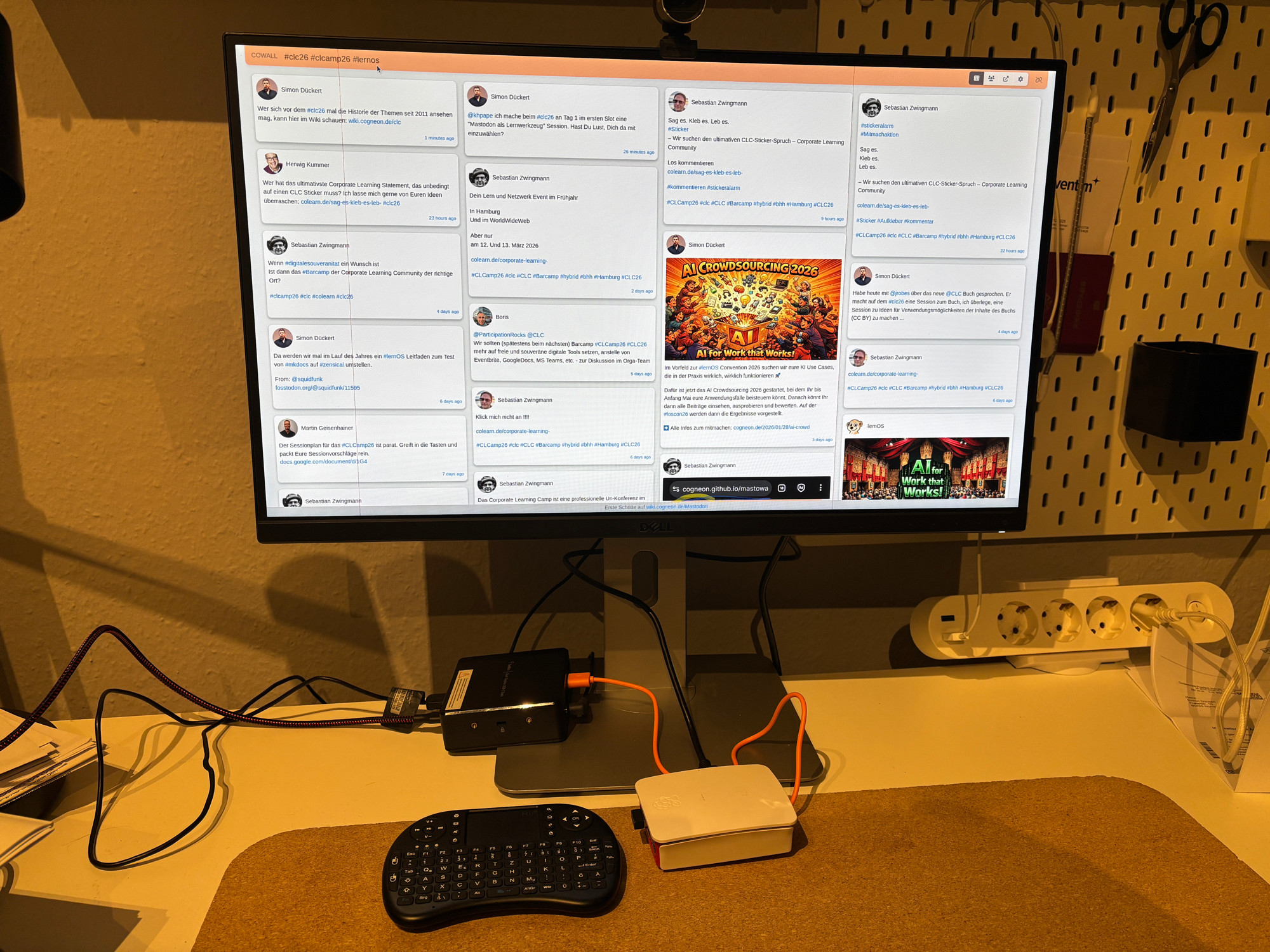 Der #RaspberryPi für die Social Wall auf dem Corpoate Learning Camp ist eingerichtet. Ihr müsst nur die Hashtags #clc26 oder #clcamp26 auf Mastodon verwenden, um darauf zu erscheinen 🤗
