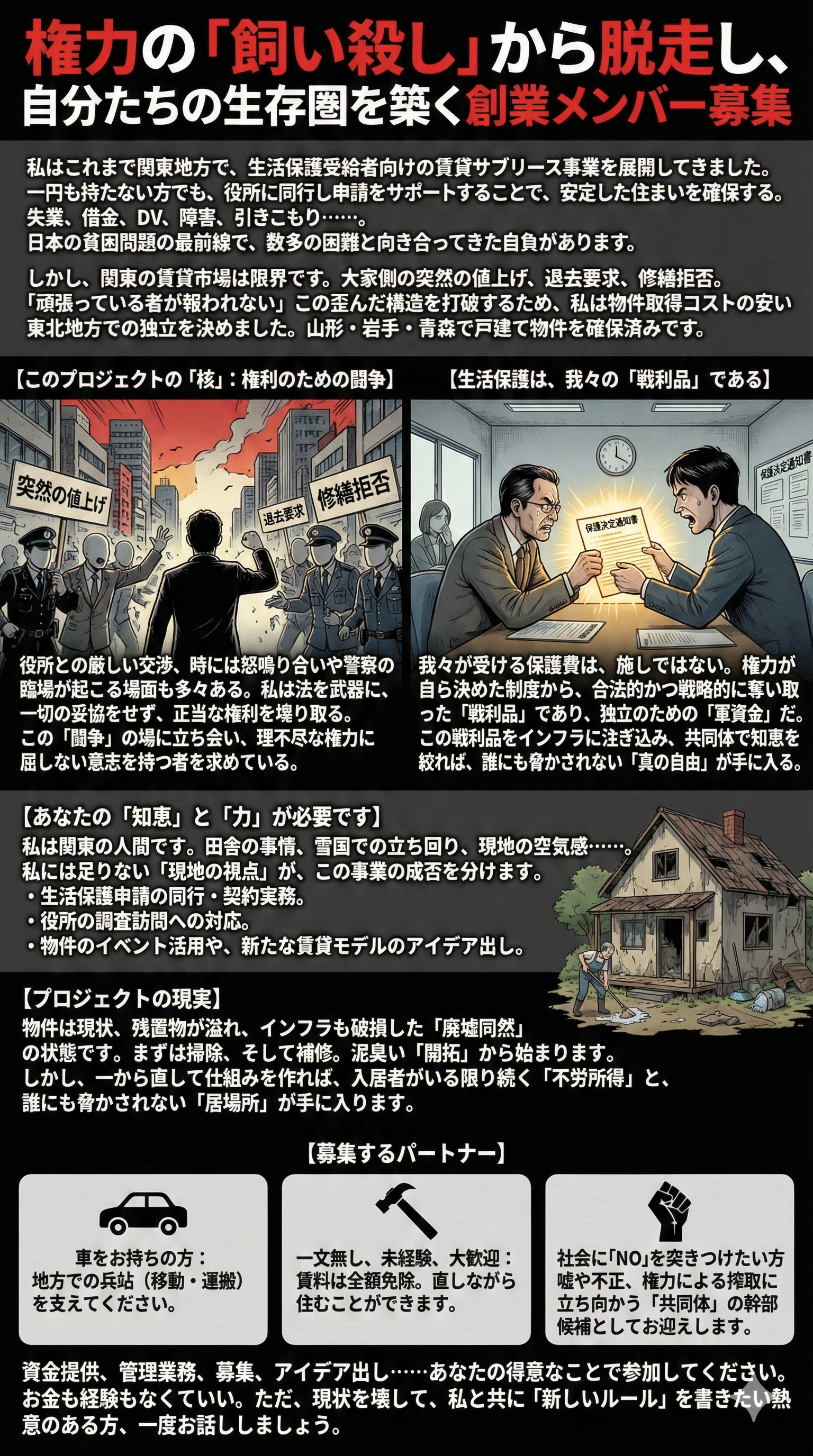 @[email protected]権力の「飼い殺し」から脱走し、自分たちの生存圏を築く創業メンバー募集