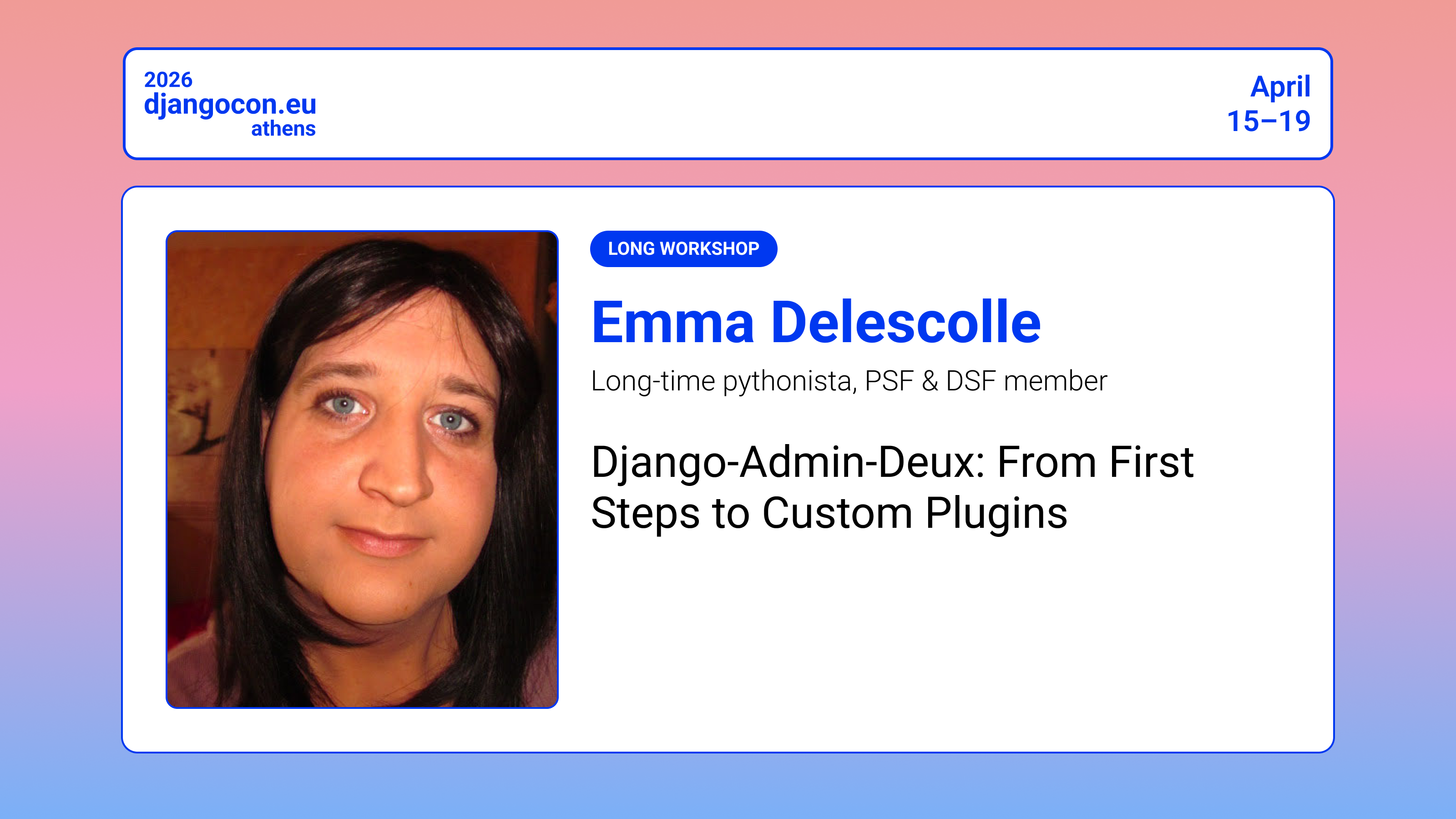 ⚙️ WORKSHOP: Django-Admin-Deux: From First Steps to Custom Plugins by @EmmaDelescolle