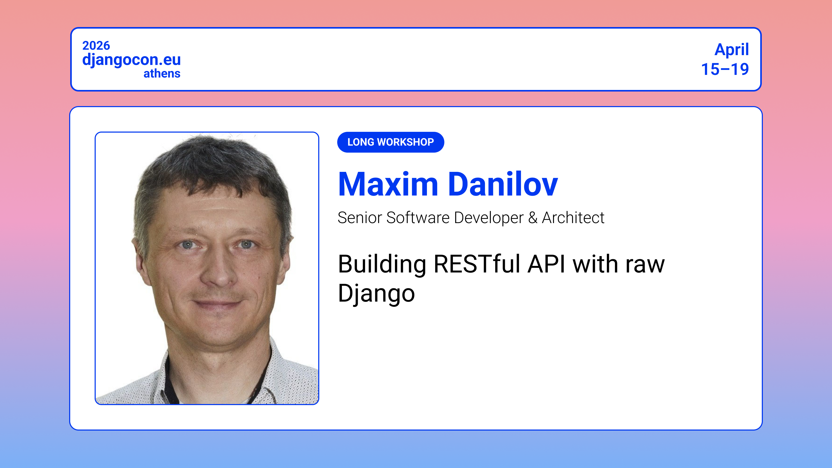 This workshop explores how Django provides all the essential tools needed to build RESTful APIs without relying on external libraries like DRF or Spectacular. Participants will learn the fundamentals of project development in Django, including built-in serialization, JSON responses, async ORM and class-based views.