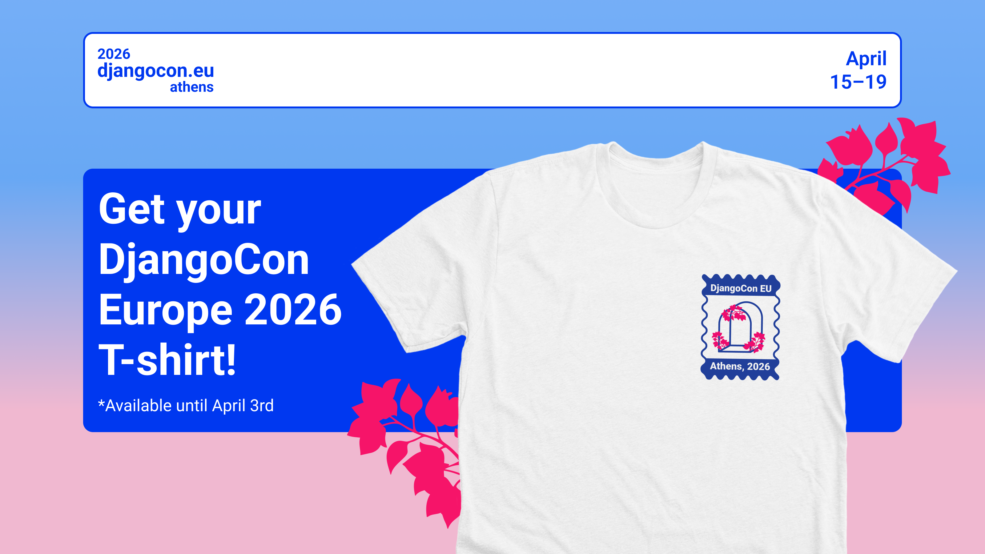 The official DjangoCon Europe 2026 T-shirt is here and cooler than ever! Wear it at the conference, back home, everywhere.