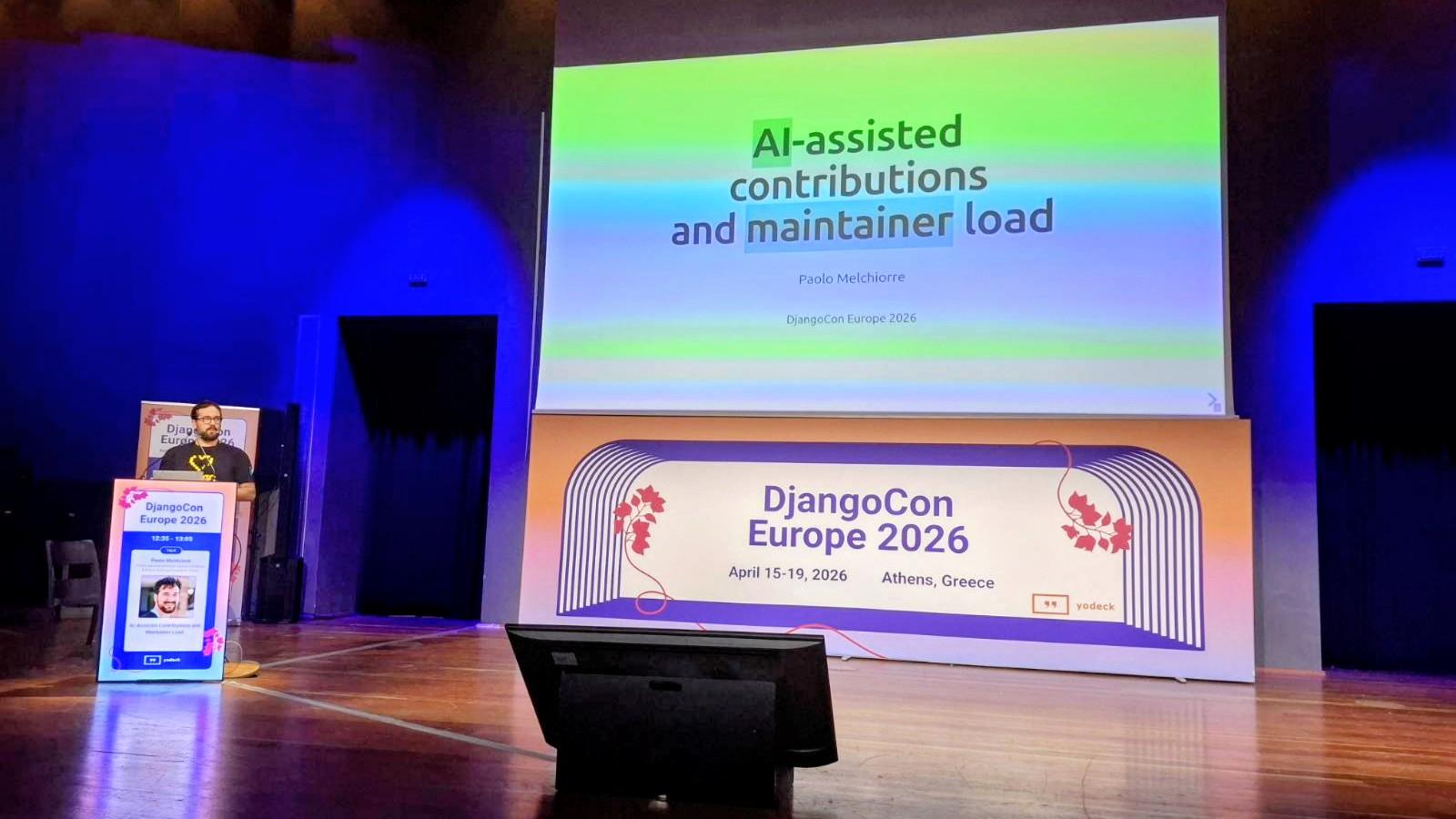This morning I presented my talk “AI-Assisted Contributions and Maintainer Load” at DjangoCon Europe 2026 in Athens 🇬🇷