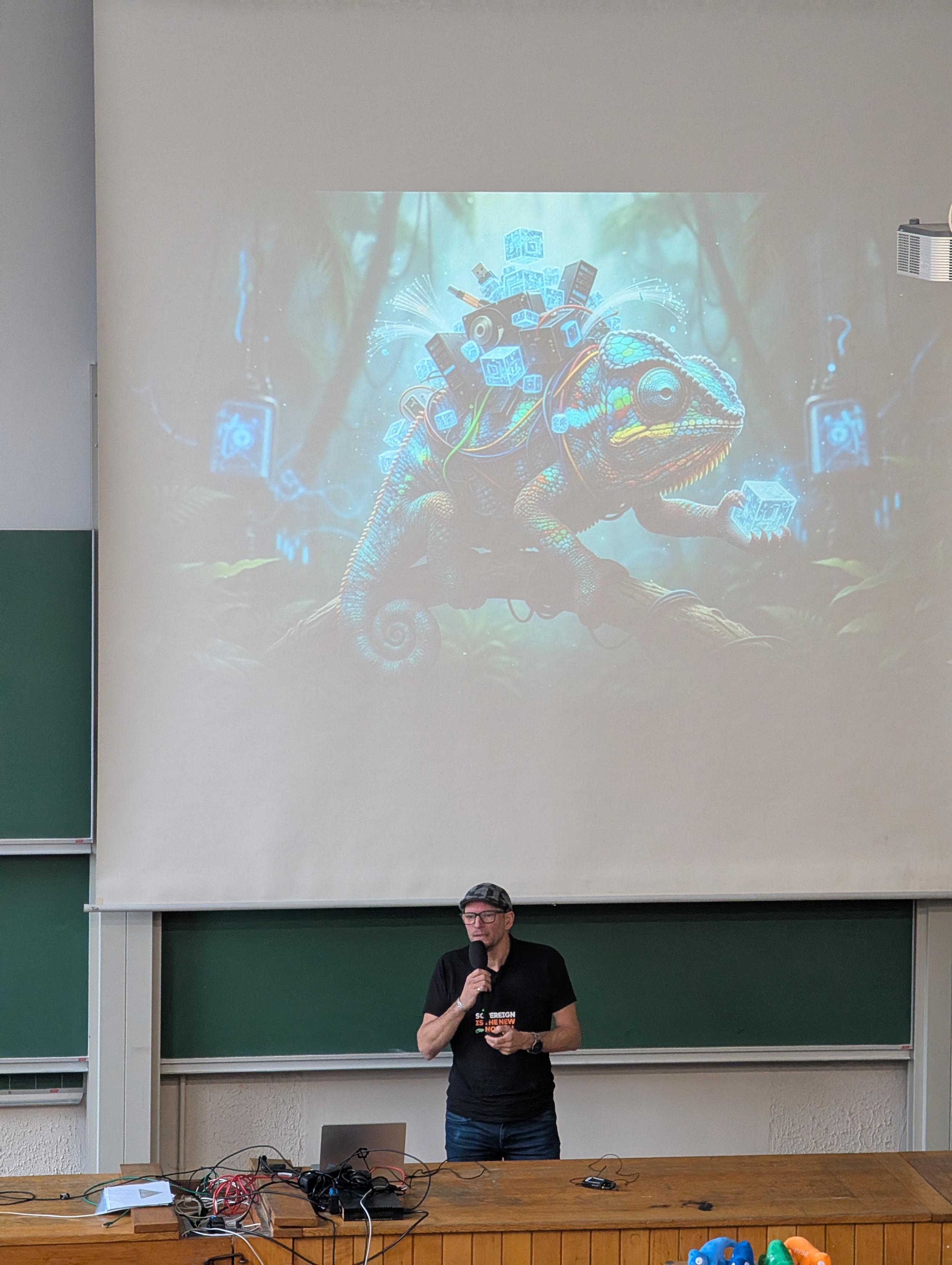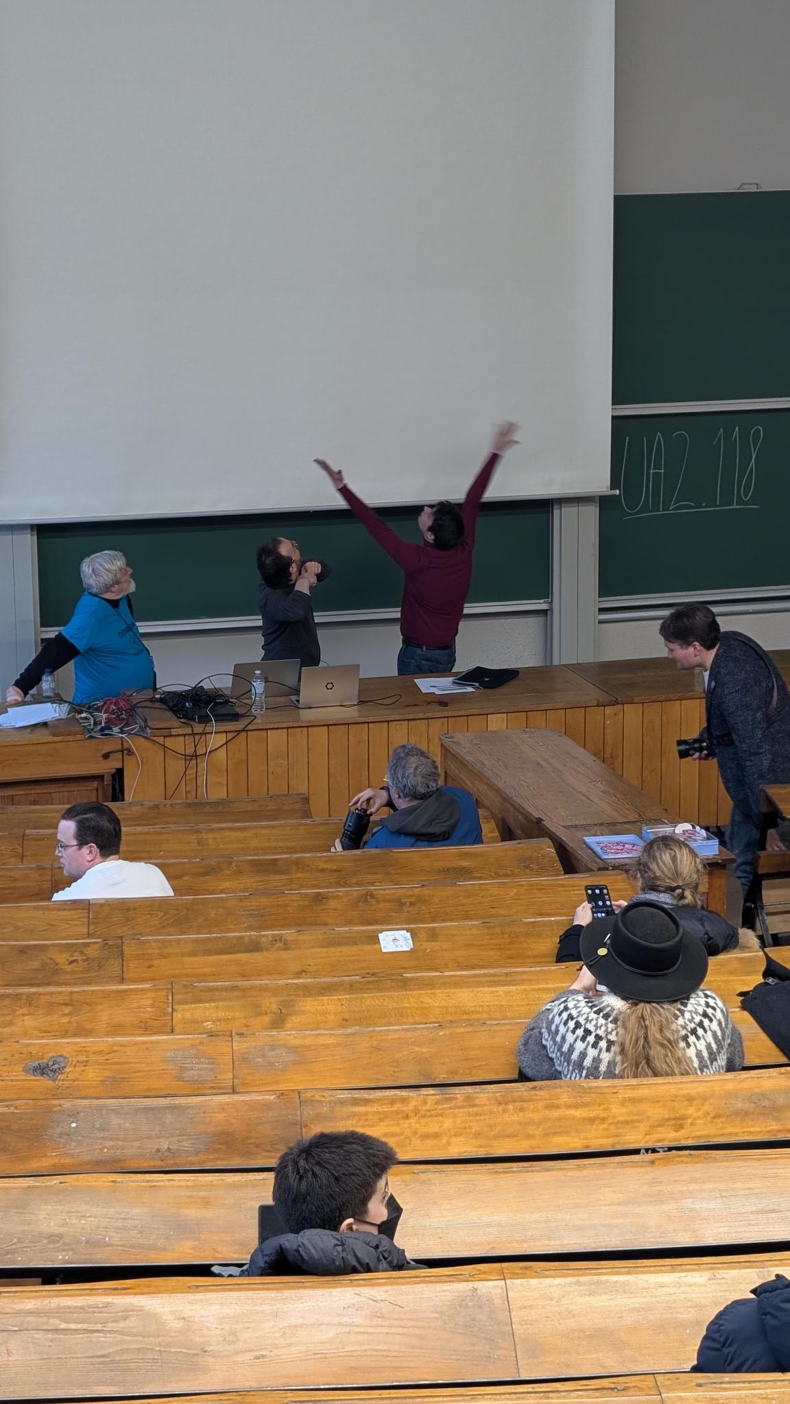 Live images of me gesturing reverently to the projector screen as if it was some kind of eldritch horror #FOSDEM