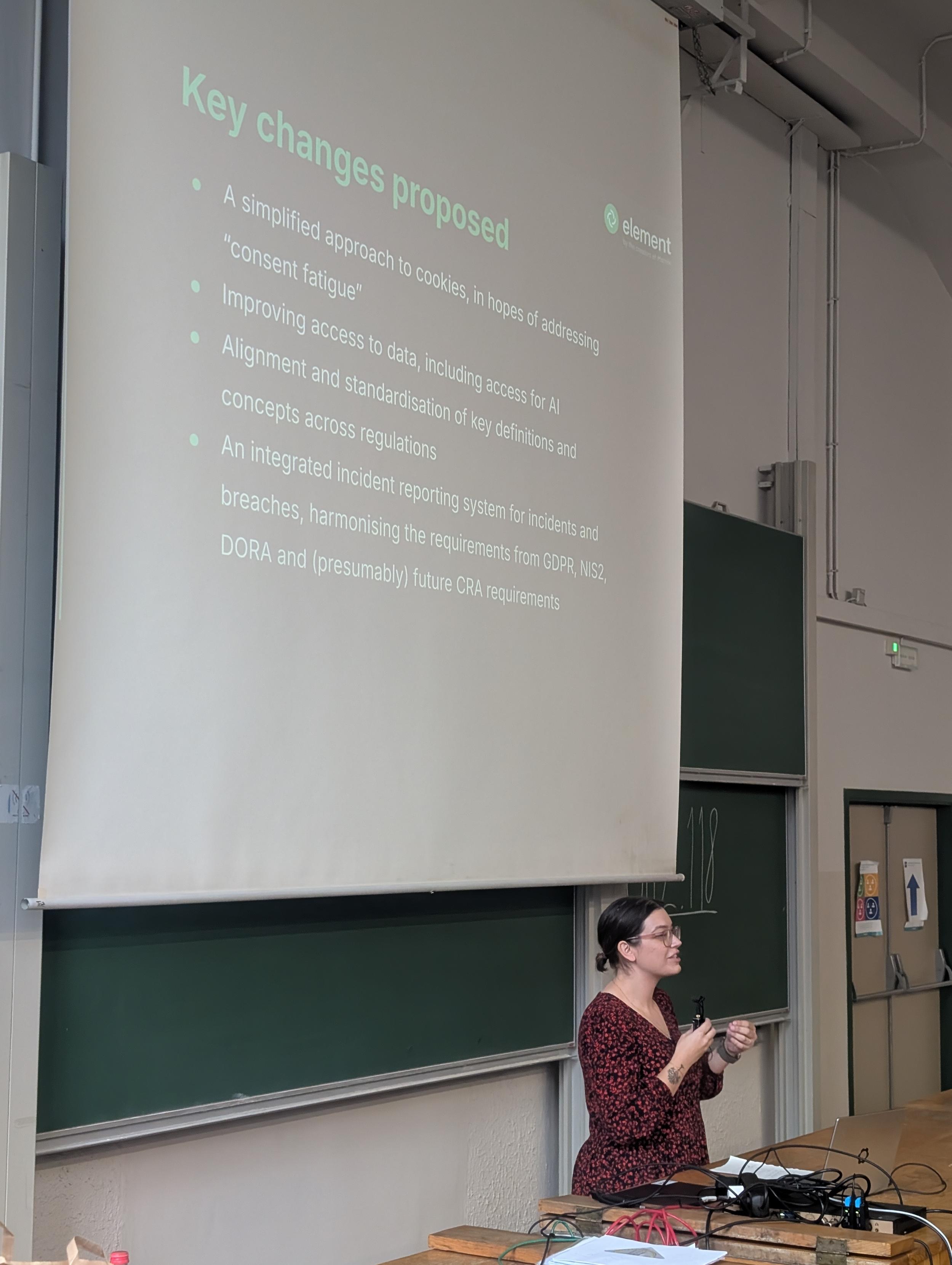 The amazing Denise from Element is talking about how the EU's upcoming omnibus reforms in tech are going to impact Open Source! #opensourceeupolicy #fosdem